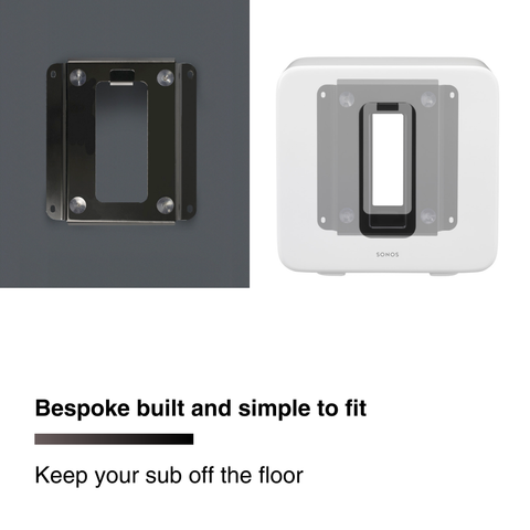 The black Flexson Wall Mount for Sonos Sub is a single mount with an integrated hook and flat-to-wall design. This mount is made specifically for use with the Sonos Sub and features 0.1" steel construction for durability. Rubber isolators are included to prevent unwanted subwoofer vibration and resonance.